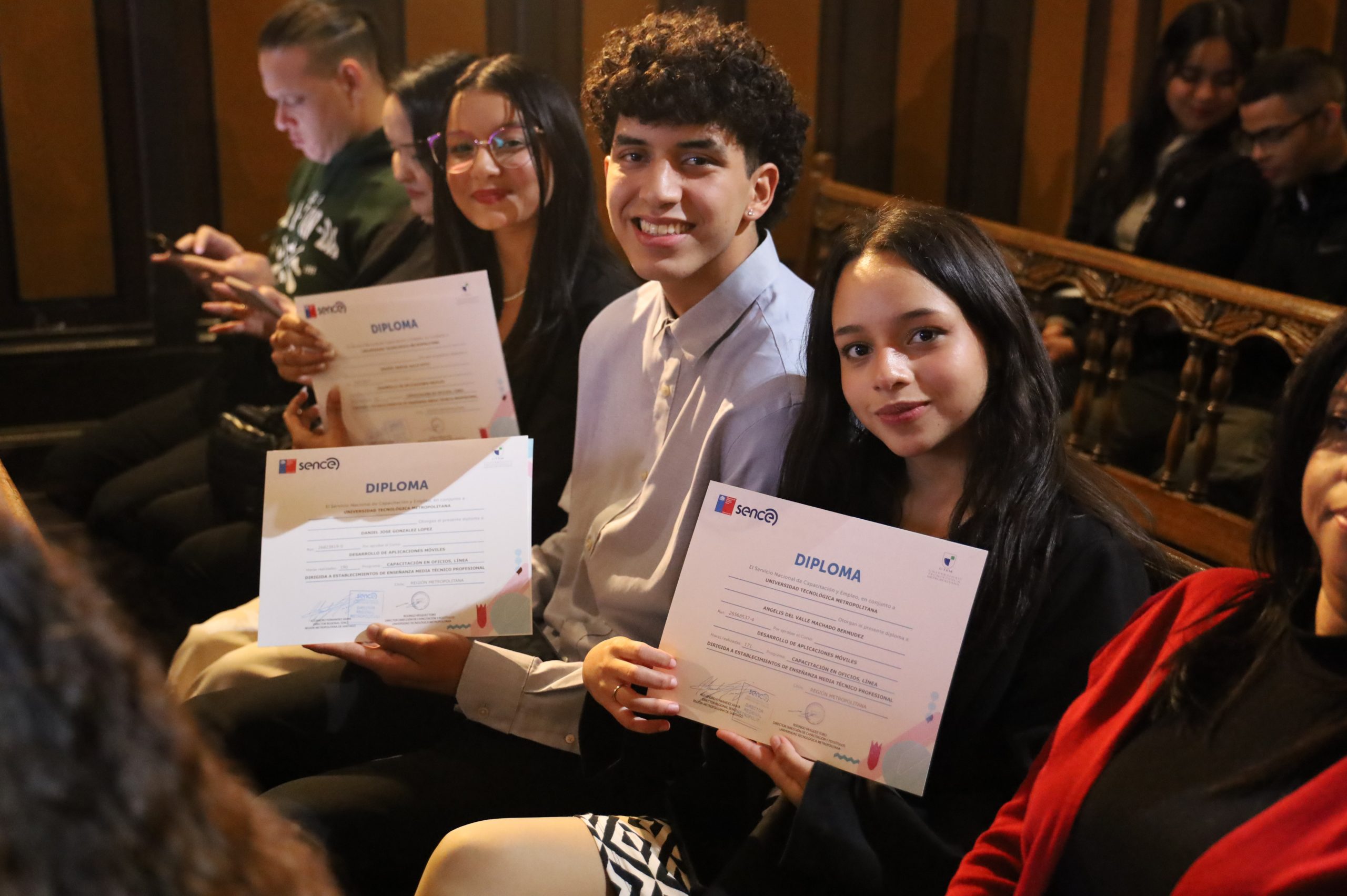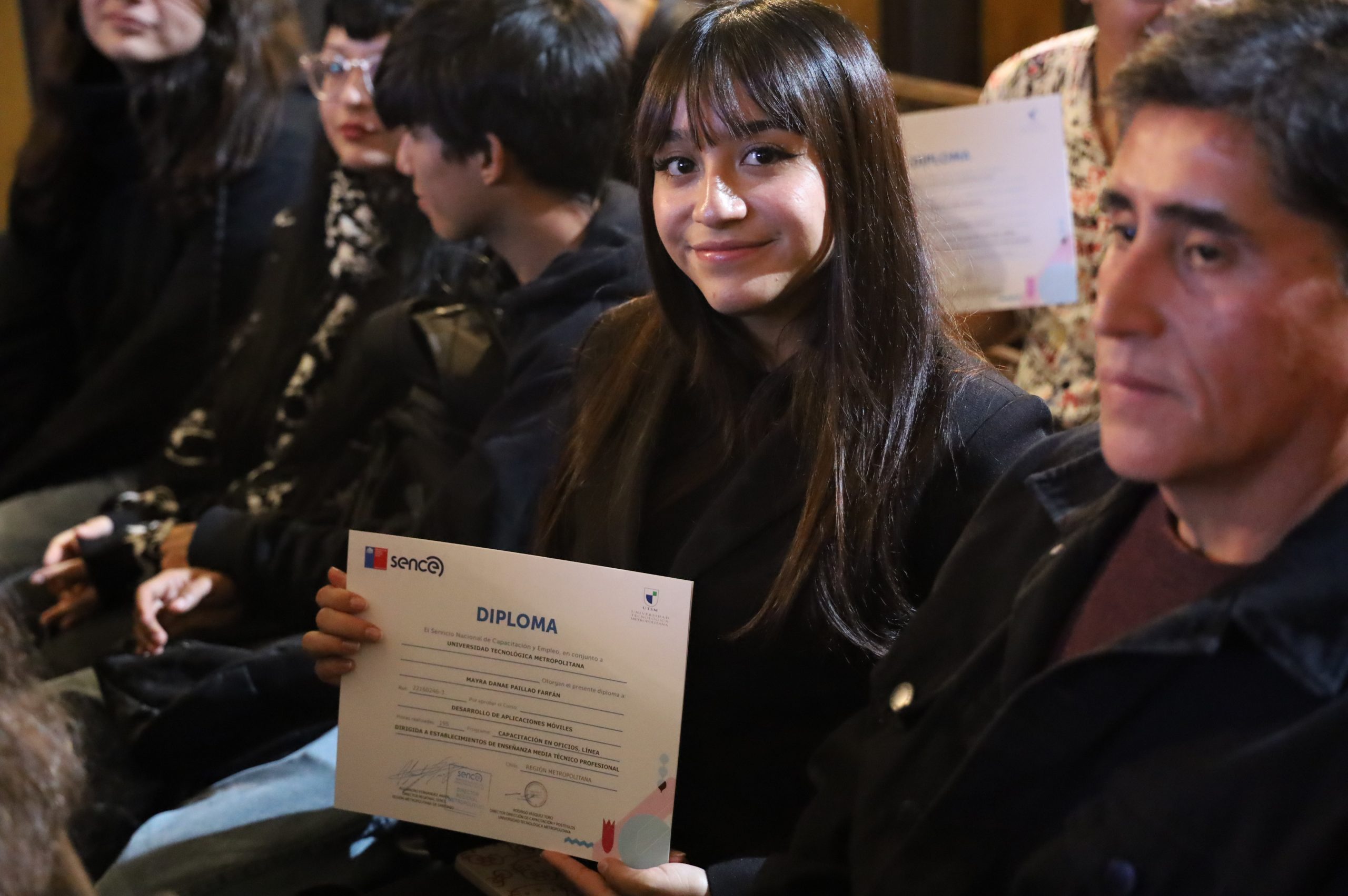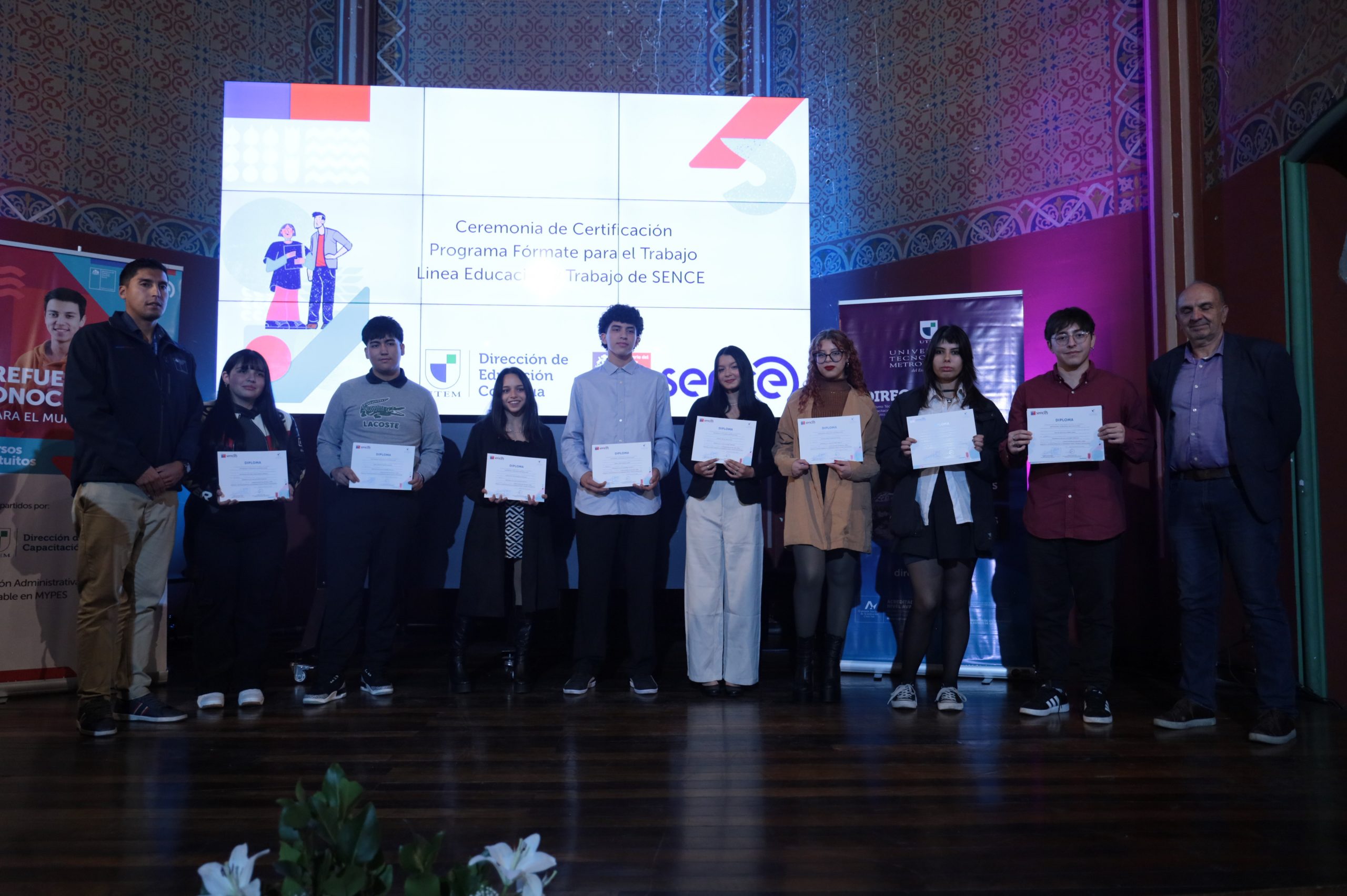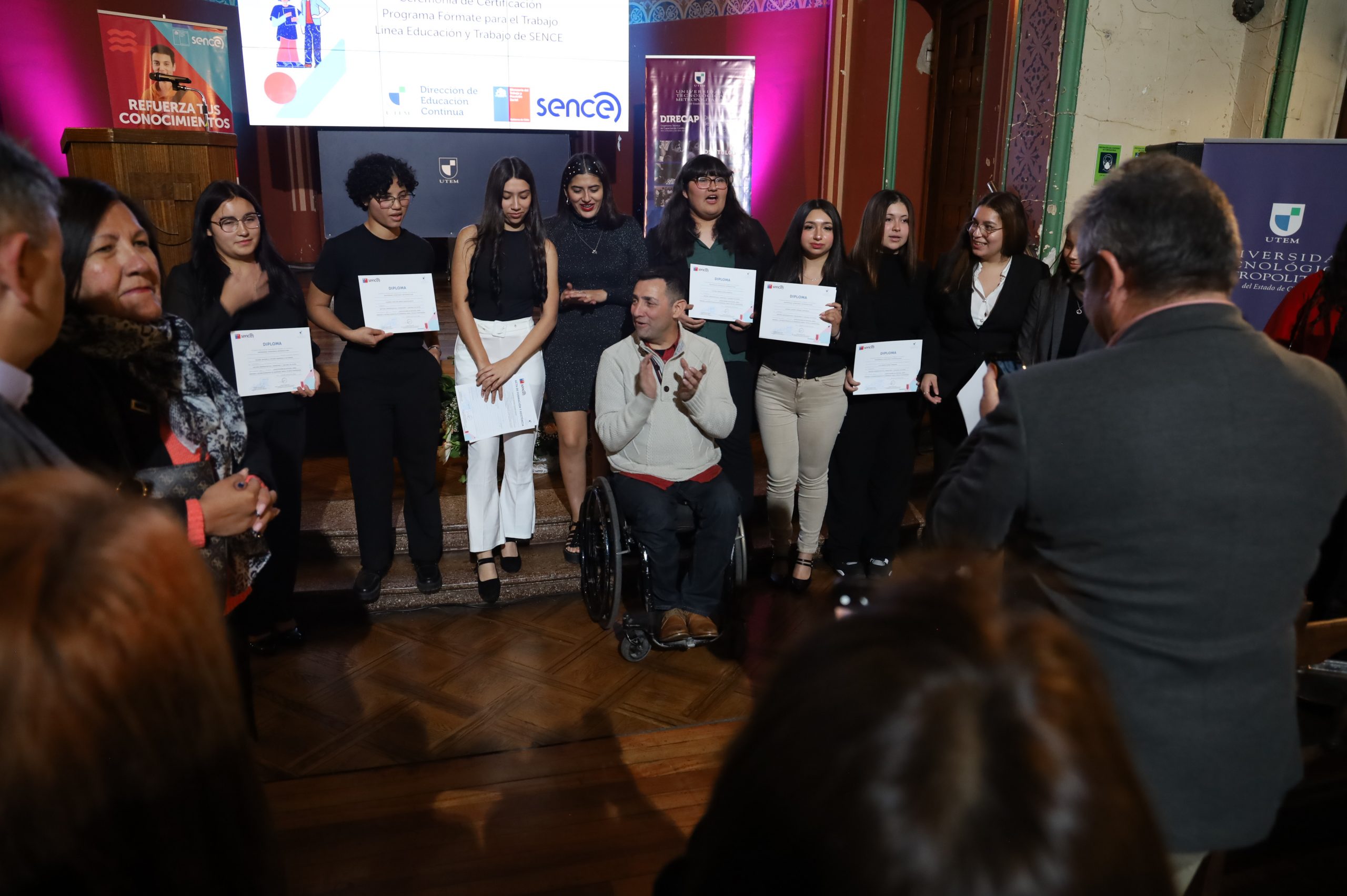 En una emotiva ceremonia realizada en el Salón de Honor de la Universidad Tecnológica Metropolitana (UTEM), se llevó a cabo el pasado 25 de abril la entrega de certificados a los estudiantes egresados del Programa de Capacitación en Oficios en Liceos UTEM, iniciativa impulsada por el Servicio Nacional de Capacitación y Empleo (SENCE) en colaboración con la UTEM, con el objetivo de fortalecer la empleabilidad juvenil.